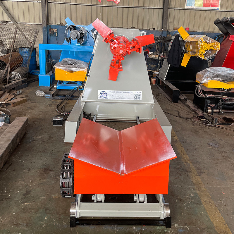 5 Tonne hydraulisches decoiler populärer Verkauf in vielen Ländern, allgemeine Spulenstandkapazität umfassen 3 Tonne, 5 Tonne, 7 Tonne, 10 Tonne und 15 Tonne.